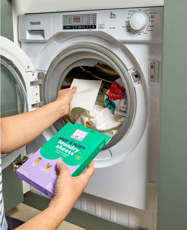 Helyezz egy darab mosólapkát közvetlenül a mosógép dobjába. Ezek a kis kendők tökéletesen könnyűek és helytakarékosak, teljesen feloldódnak vízben, és nem hagynak maguk után maradványokat – csak a friss, tiszta ruhákat!